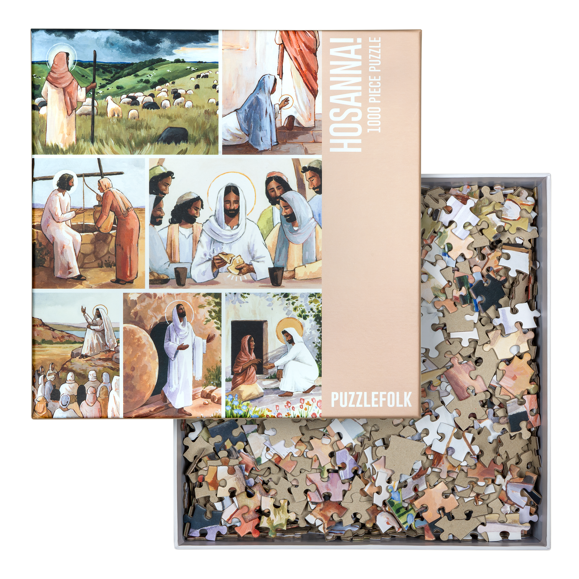 Hosanna is a 1,000 piece puzzle depicting powerful and inspiring scenes from the life of Christ. With rich detail this puzzle offers both a challenge and rewarding way to reflect on His story as you piece it together.